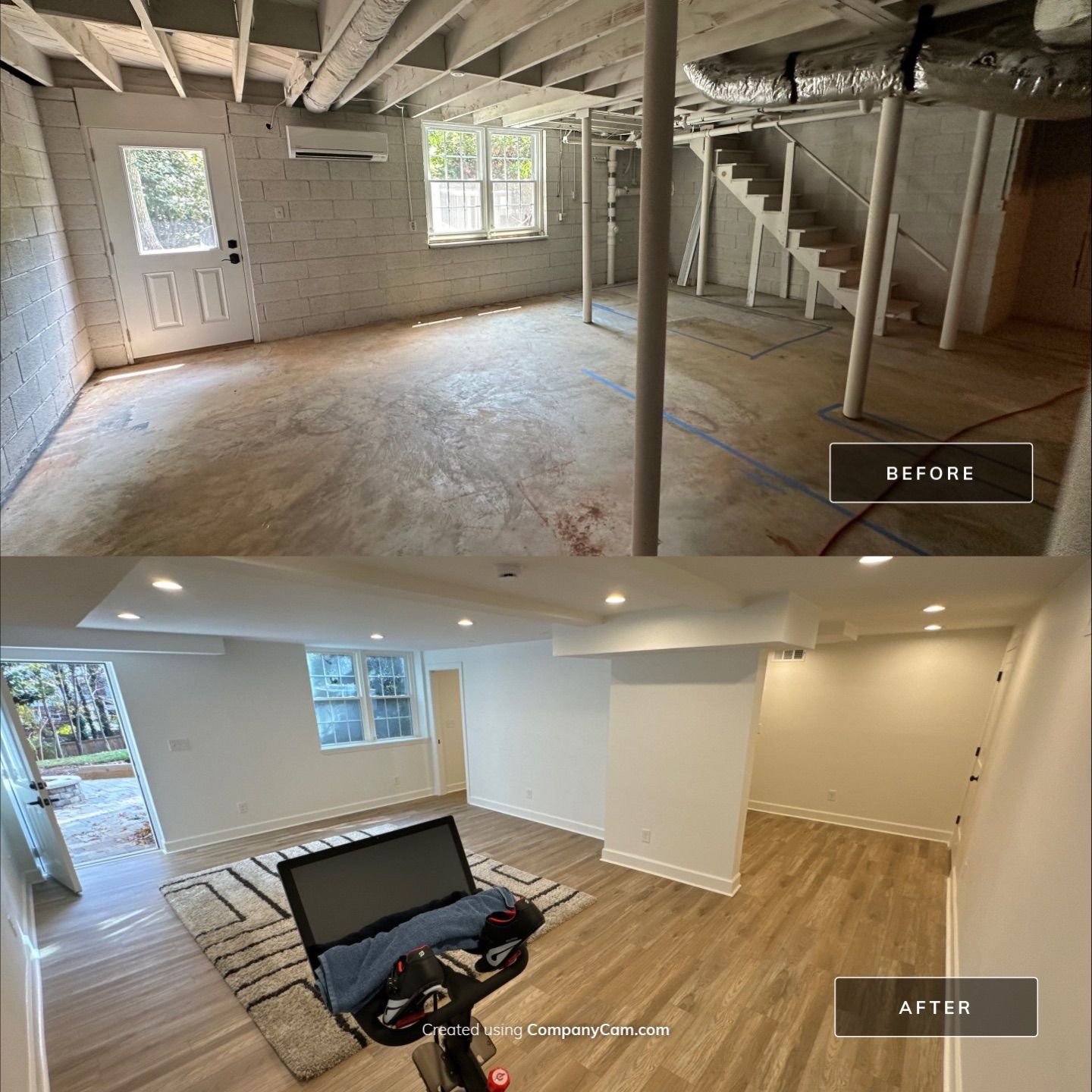 This Dunwoody, Georgia project focused on turning an unfinished basement into a fully livable, functional space that adds both comfort and value to the home. What was once bare concrete, exposed framing, and unused square footage is now a clean, finished environment designed for everyday use — whether that’s entertaining, relaxing, or creating additional living quarters.